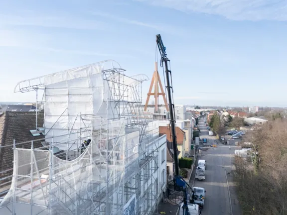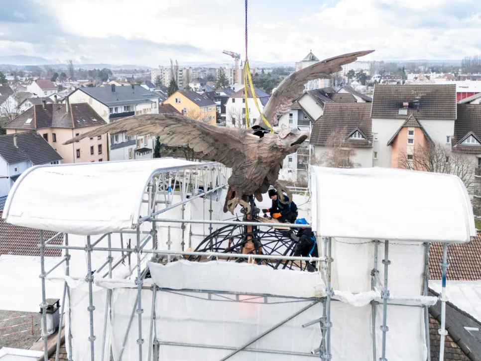 But since Tuesday, February 17, the eagle has been back on the roof of the Fondation! From the top of its promontory and hidden under the construction site tarps, the residents of Saint-Louis can see the tips of its wings, which have regained some of their original color. It must be said that the Alsacienne de Métallerie workshops in Marlenheim have carried out a major project involving significant structural and aesthetic renovations.