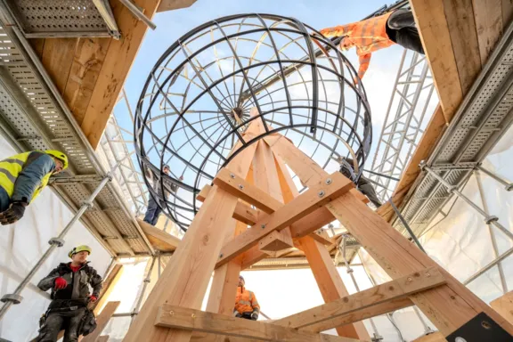 However, there are still a few steps to go before the building regains its original silhouette: the installation of the glass facets. Their installation has been delayed by weather conditions and the complexity of their custom manufacturing.